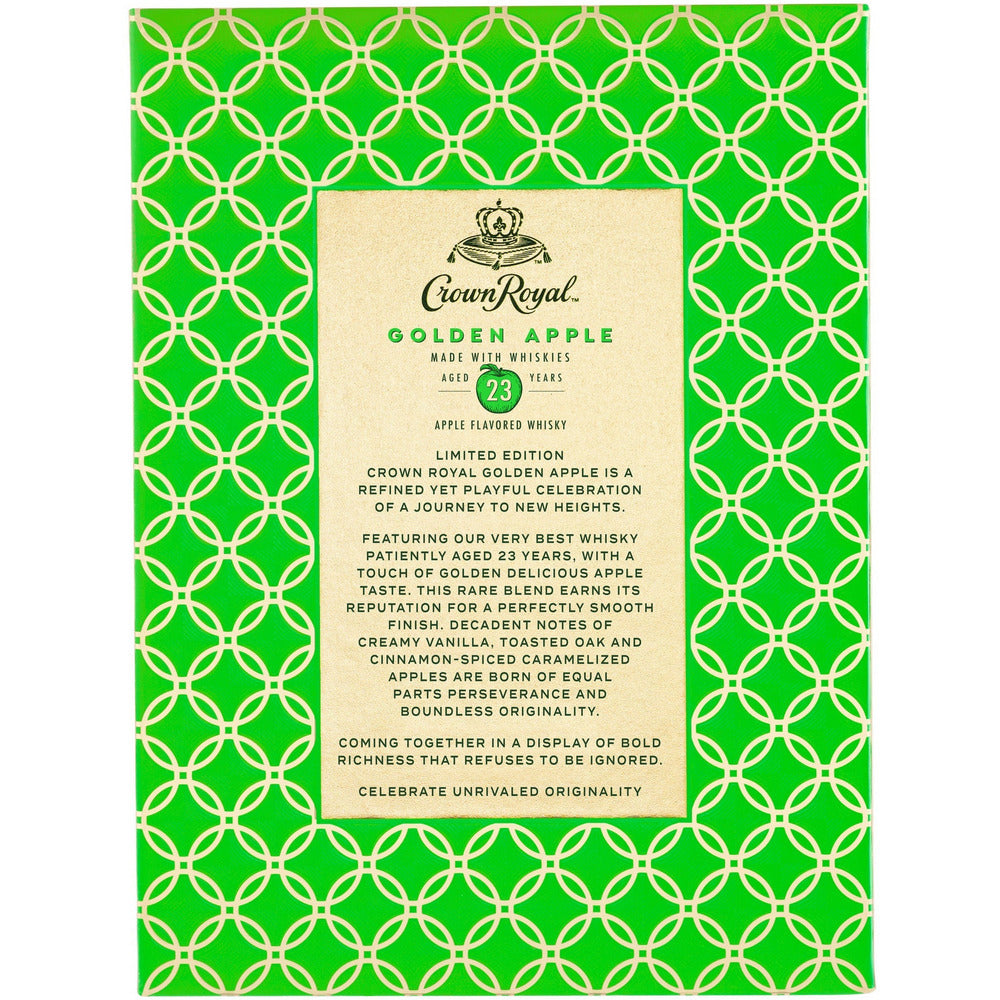 Crown Royal Golden Apple Whisky 23 Year Old is an extra rare blend pairing patiently aged 23 year old whiskies with the taste Golden Delicious Apples.
