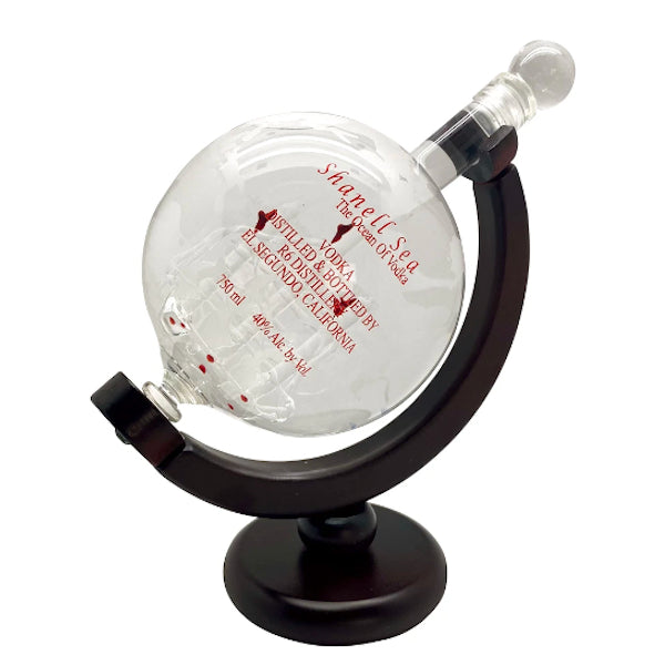 This vodka is enclosed in a circulating globe with a Santa Maria-esque ship inside.